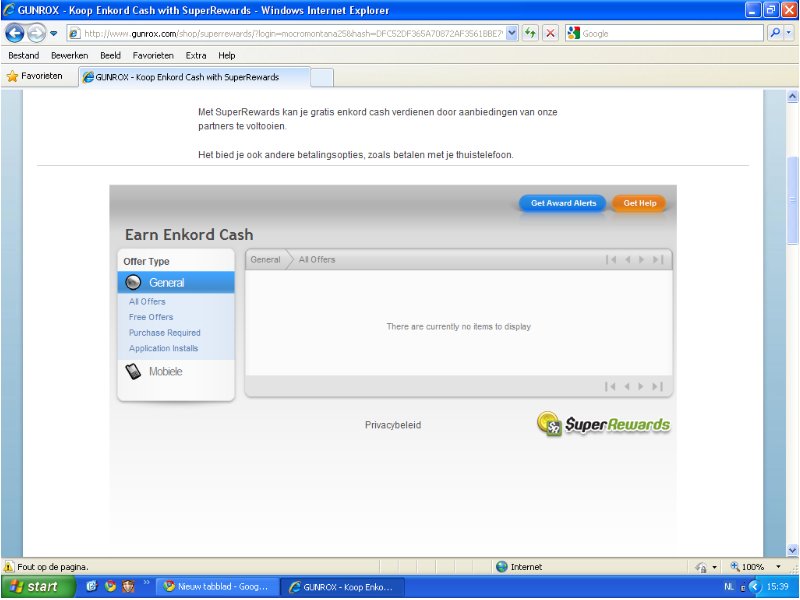 when i click buy cash and click again on super rewards option i get a blanc screen or a screen which says ''no options available''.