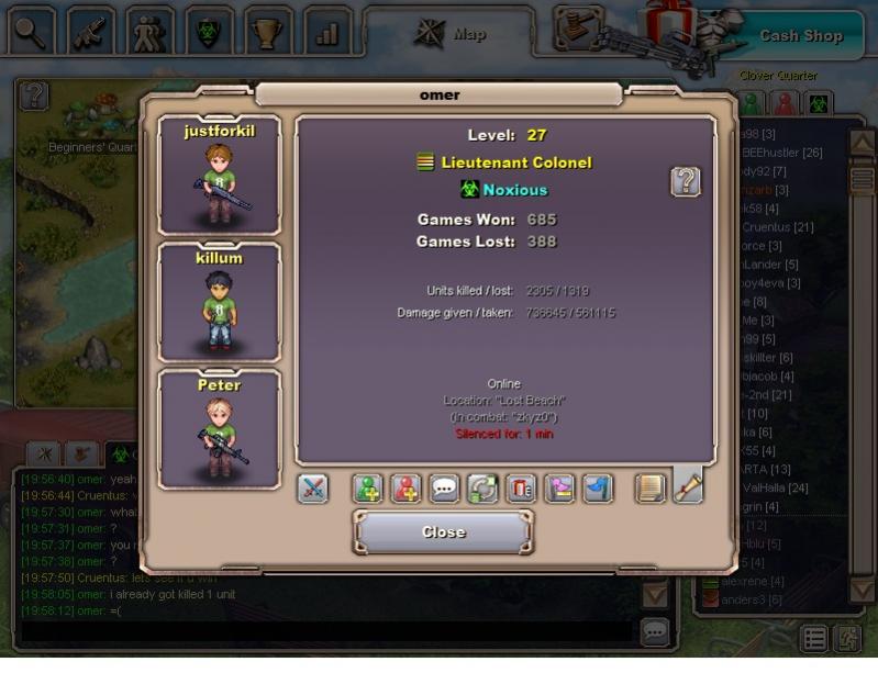 Here is a screenshot of Omar a little after I kicked him from the clan - now fully equipped with totally different guns and you can see the armor he is wearing.
