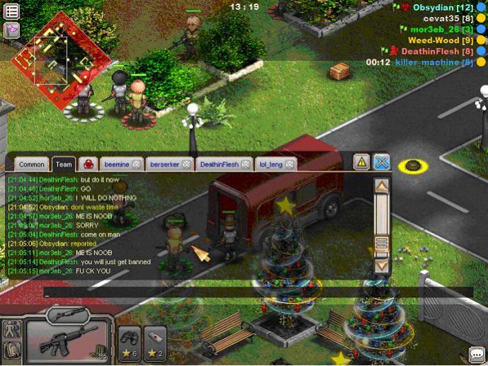 I was in a 3v3 game in Clover and my team was in a difficult position when suddenly player Mor3b refused to play and started abusing us We suspect now that he was whispering co-ordinates to the opposition the whole time because we were getting hit from the enemy no matter where we hid. I can't prove that he gave the enemy co-ordinates because he didn't shout them out, but I do have a screenshot of him swearing at us. I also have a screenshot of him deliberately saying that he isn't moving any more - which made it clear that his intention was for us to lose and would amount to the actions of being a faker!