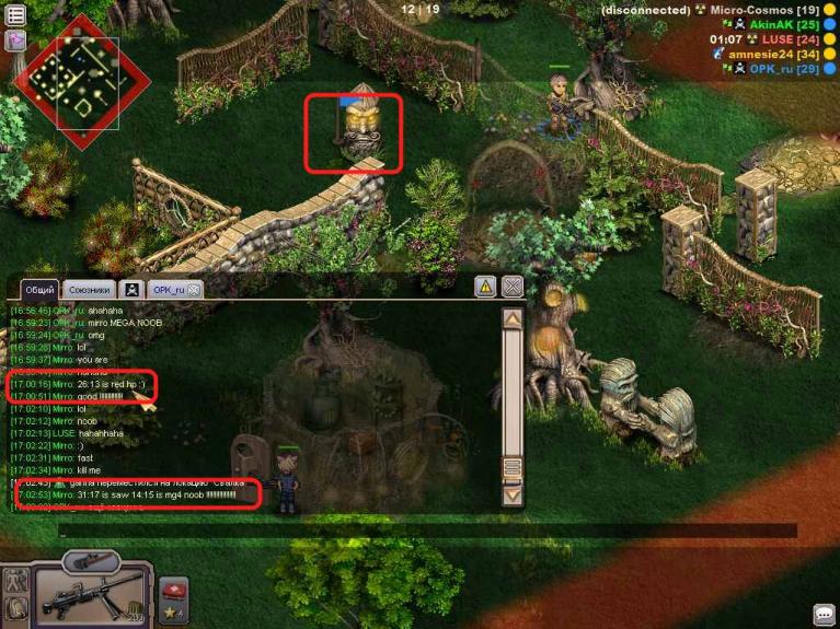 оригиналы не сохранил, но вроде тут и так видно... на скрине - мирро (который поидее был в команде со мной и орком) начинает сливать в общем чате информацию о местонахождении наших с орком бойцов (((