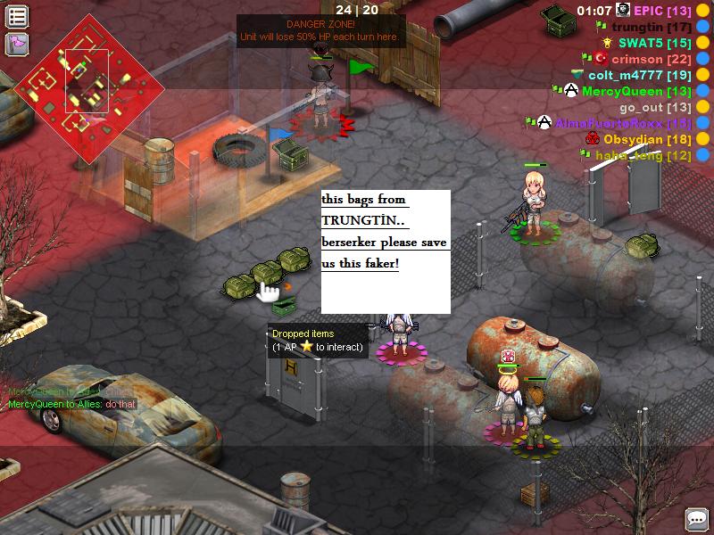 http://i48.photobucket.com/albums/f235/cau3milano/asdasdasd.jpg All of these 3 bags are from trungtin.When red zone come close then he used all units go ahead then shot himself by aka47 and stick his team in same line,at the middle.Then after dead,he showed all our position.
