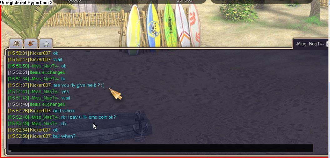 I was gave to -Miss_Nasty- some stuff and she/he say to me he/she pay 1000 cash and she/he get mi in ignore list. And She/he was play on my clan lider.