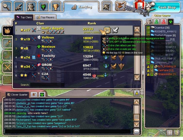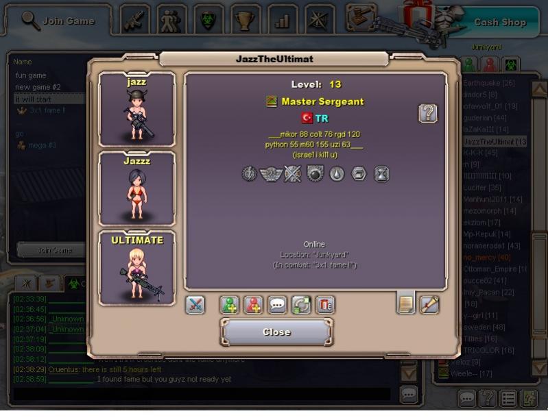 Berserker, how about looking at Lucifer from Hells Angels clan doing his fake fames to try to catch up to us in first place. He is doing one right now. Here are some screenshots of a very unrealistic game in junk. The clan leader of TR kicked all his clan members the day before. Now I see that all his new recruits have suddenly found the courage to go against a lvl 35 when just about everyone i asked refuse to go 3v1 against my 29 because they said its too high and I would win.